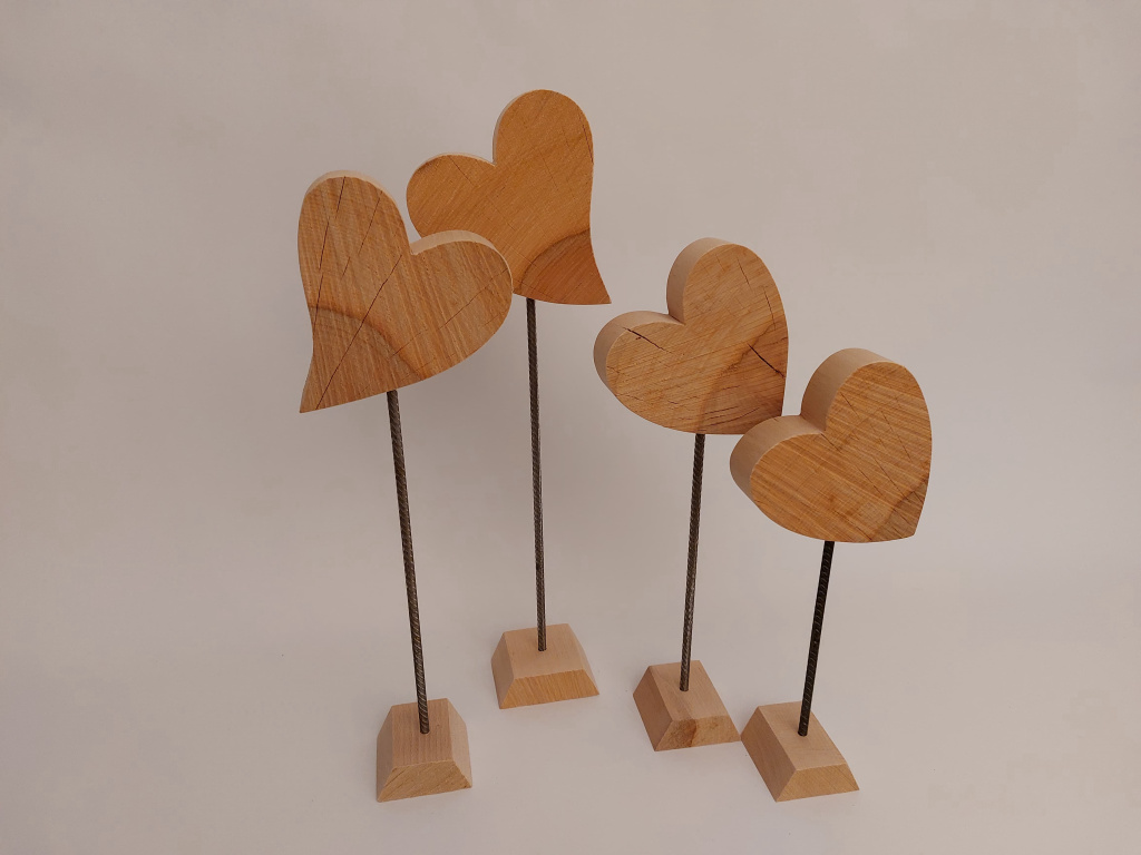 - Design: Schlicht und modern – das Herz sitzt auf einem stabilen Stab, der in einem Holzsockel verankert ist. Dieses minimalistische Design hebt die natürliche Schönheit des Holzes hervor.